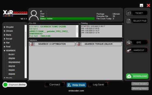 XirDecoder DTC is a fully unlocked chip tuning software that provides automatic solutions for the most common ECU operations — including DTC removal, Stage 1/2 tuning, EGR OFF, DPF OFF, and Hardcut limiter. Designed for professional tuners, this tool gives you unlimited daily usage without restrictions.