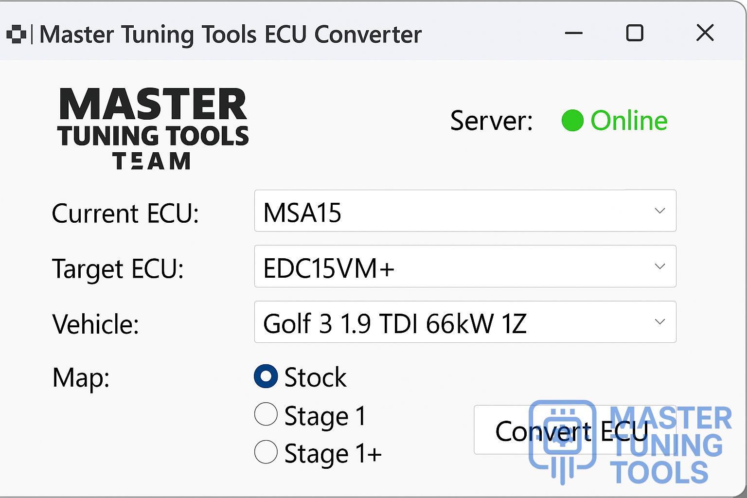 🚗💻 Master Tuning Tools ECU Converter v1.5 – the ultimate tool developed by Master Tuning Tools Team to convert MSA15 to EDC15VM+ on the classic Volkswagen Golf 3 1.9 TDI 66kW 1Z.